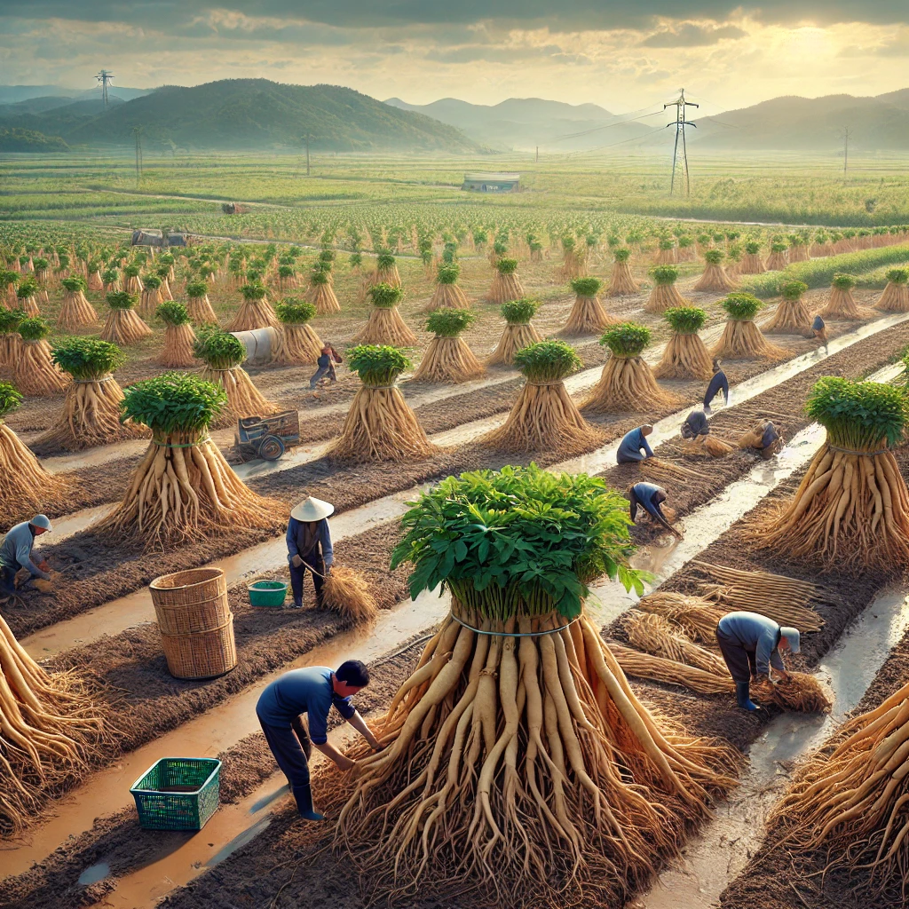한국 인삼, 흔히 "고려인삼"으로 알려진 인삼은 그 품질과 효능으로 세계적으로 높은 평가를 받고 있습니다. 한국은 인삼 재배의 오랜 전통을 가지고 있으며, 특히 인삼을 6년간 재배한 후 수확하는 것이 일반적입니다.