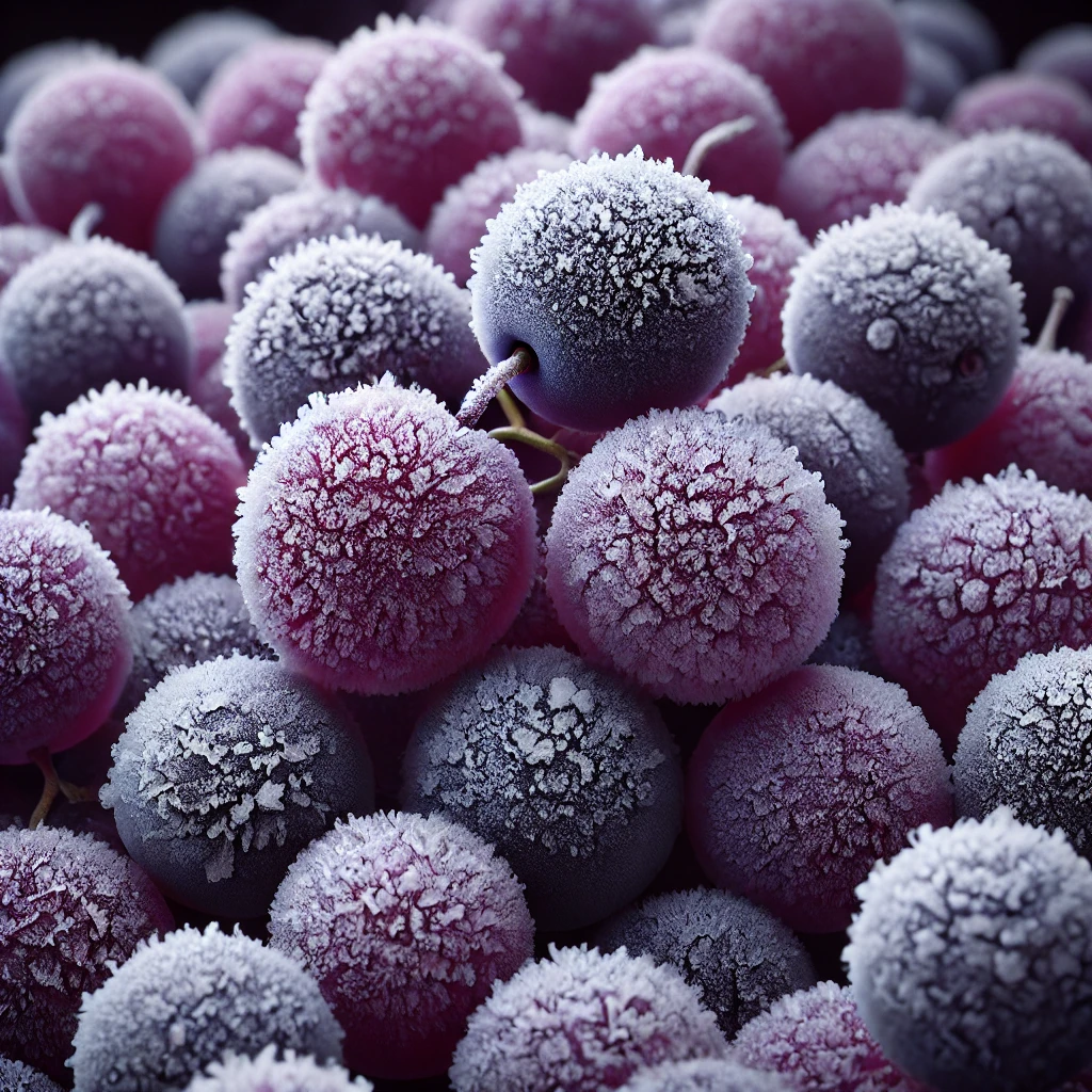 포도는 서리 맞은 뒤 얼렸을 때 당도가 크게 올라가 독특한 단맛을 자랑합니다. 얼음포도로 불리는 이러한 포도는 와인, 특히 아이스와인 제조에 사용되며 깊고 진한 맛을 냅니다.