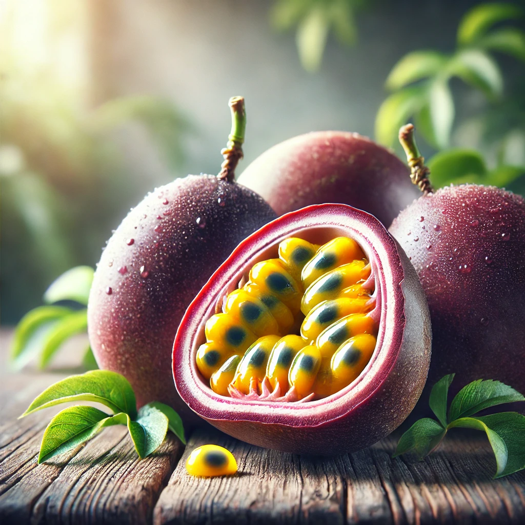 - 특징: 자주색 또는 노란색 껍질과 과즙이 풍부한 과육이 돋보입니다. 새콤달콤한 맛으로 디저트에 자주 사용됩니다. 브라질 원산으로, 현재는 전 세계 열대 및 아열대 지역에서 재배됩니다.