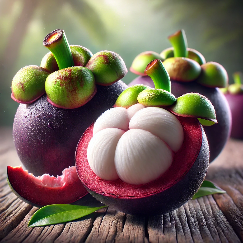 - 특징: 보라색 껍질 안에 하얀 과육이 있으며, 새콤달콤한 맛으로 열대과일 중 가장 맛있는 과일 중 하나로 꼽힙니다. "과일의 여왕"으로도 알려져 있습니다.