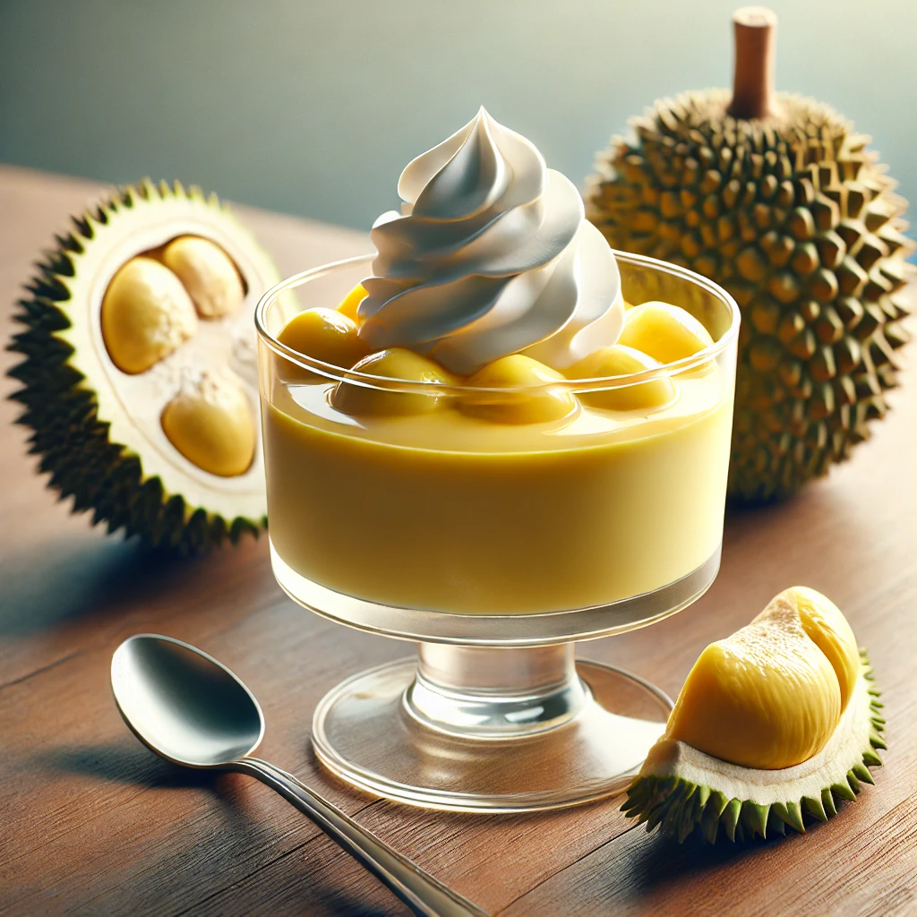 두리안을 으깨 푸딩 형태로 만들어 부드럽고 진한 디저트를 즐길 수 있습니다.