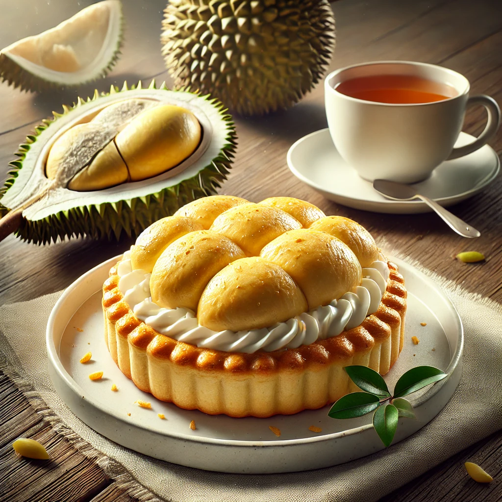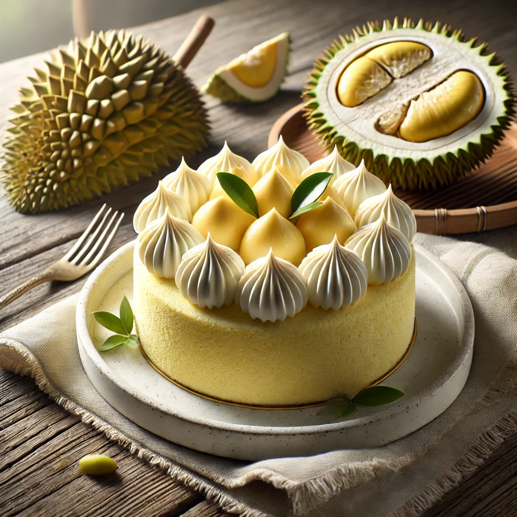 두리안을 크림과 섞어 케이크의 필링으로 사용하면 고급스러운 디저트를 만들 수 있습니다. - 두리안 푸딩