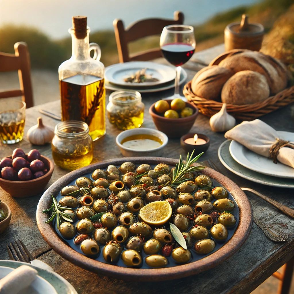 올리브 조림은 기본적으로 올리브를 기름, 허브, 향신료와 함께 천천히 조리한 음식으로, 지역과 조리법에 따라 다양한 변주를 가지고 있습니다.