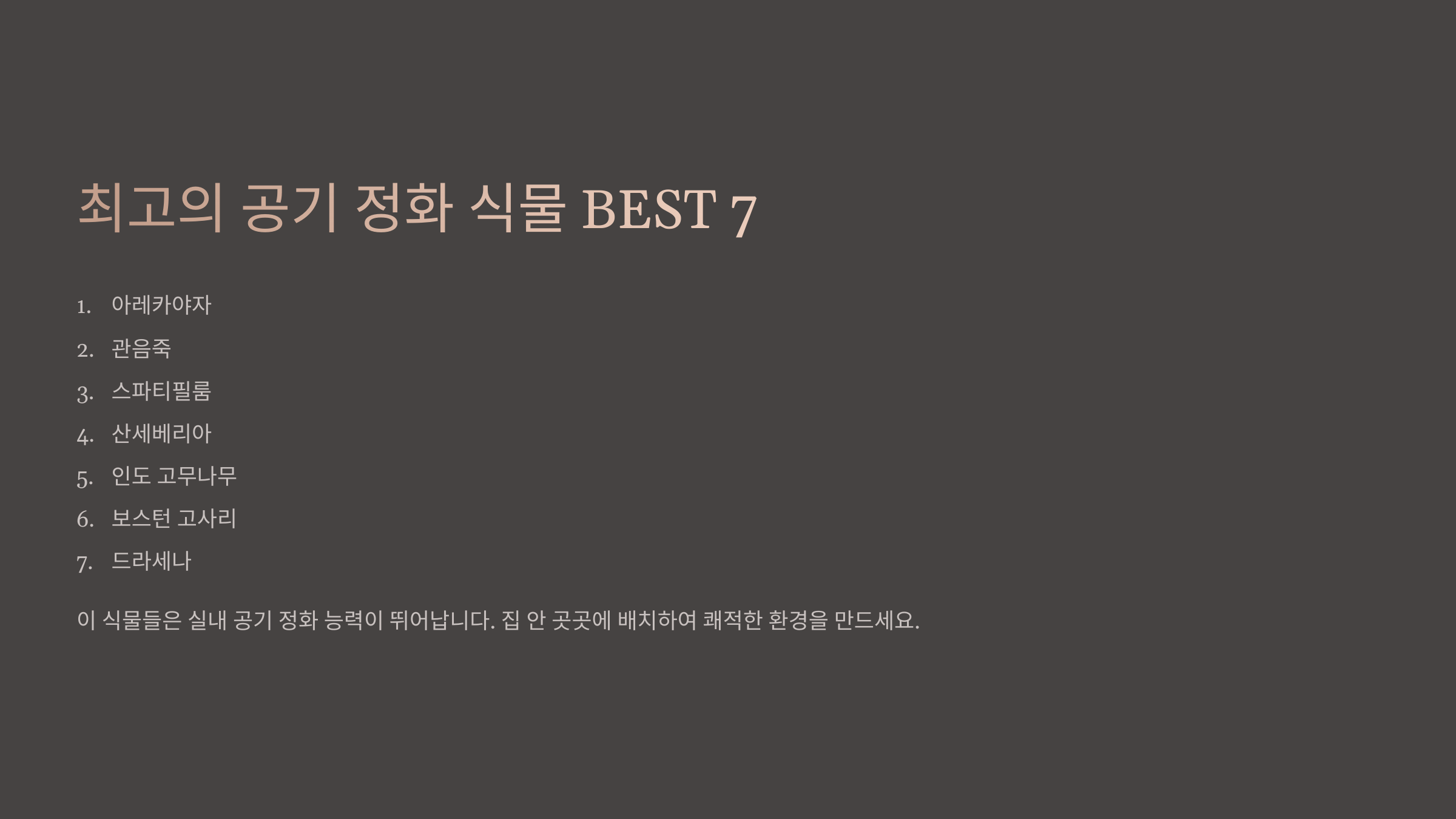🌿 공기 정화 효과가 뛰어난 식물 BEST 7