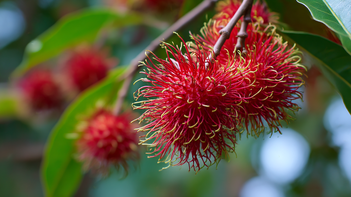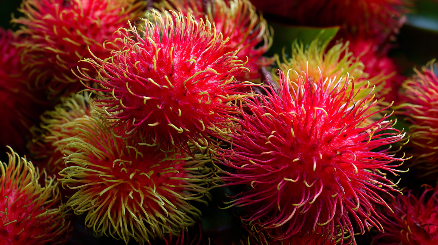 람부탄은 '머리카락이 있는'이라는 뜻을 가진 말레이어에서 유래했어요. 실제로 그 모습이 마치 작고 동글동글한 공에 붉은 털이 덮여 있는 것 같죠. 이 과일은 외형만큼이나 맛도 독특해서, 한 번 먹어본 사람들은 그 상큼한 맛에 반하게 된다고 해요.